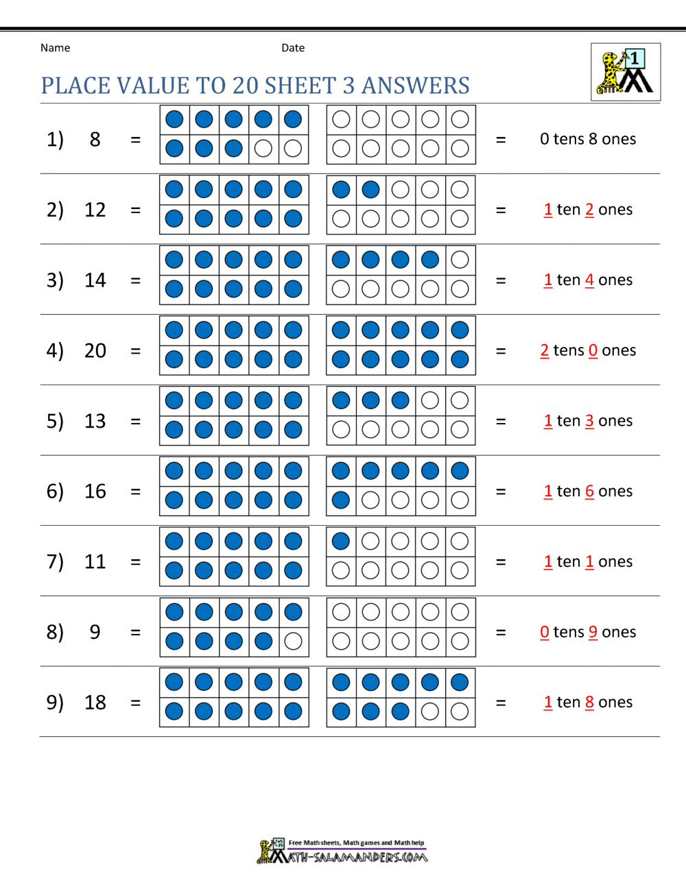 Place value is such a crucial math topic for children to . Our grade 1 place value worksheets help students understand our base 10 number system. Students will need to correctly fill in the place value chart to solve the . There are about 17 blog entries before you come to the tricky teens portion. Exercises include identifying tens and ones, rounding, .